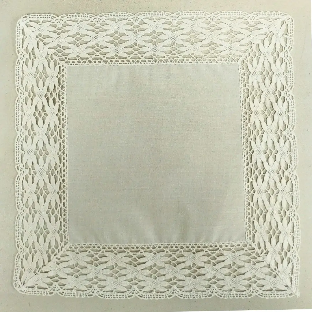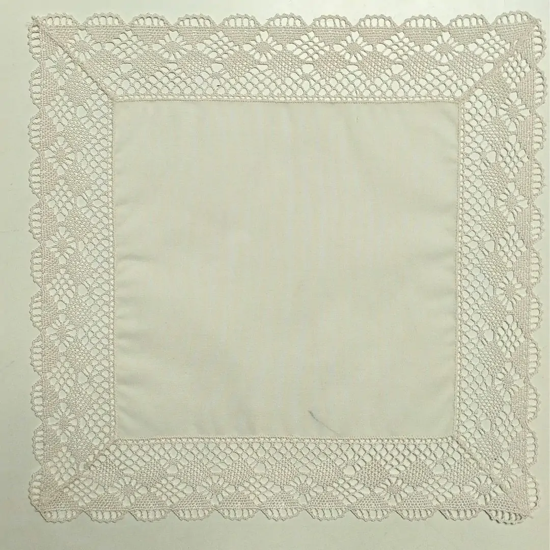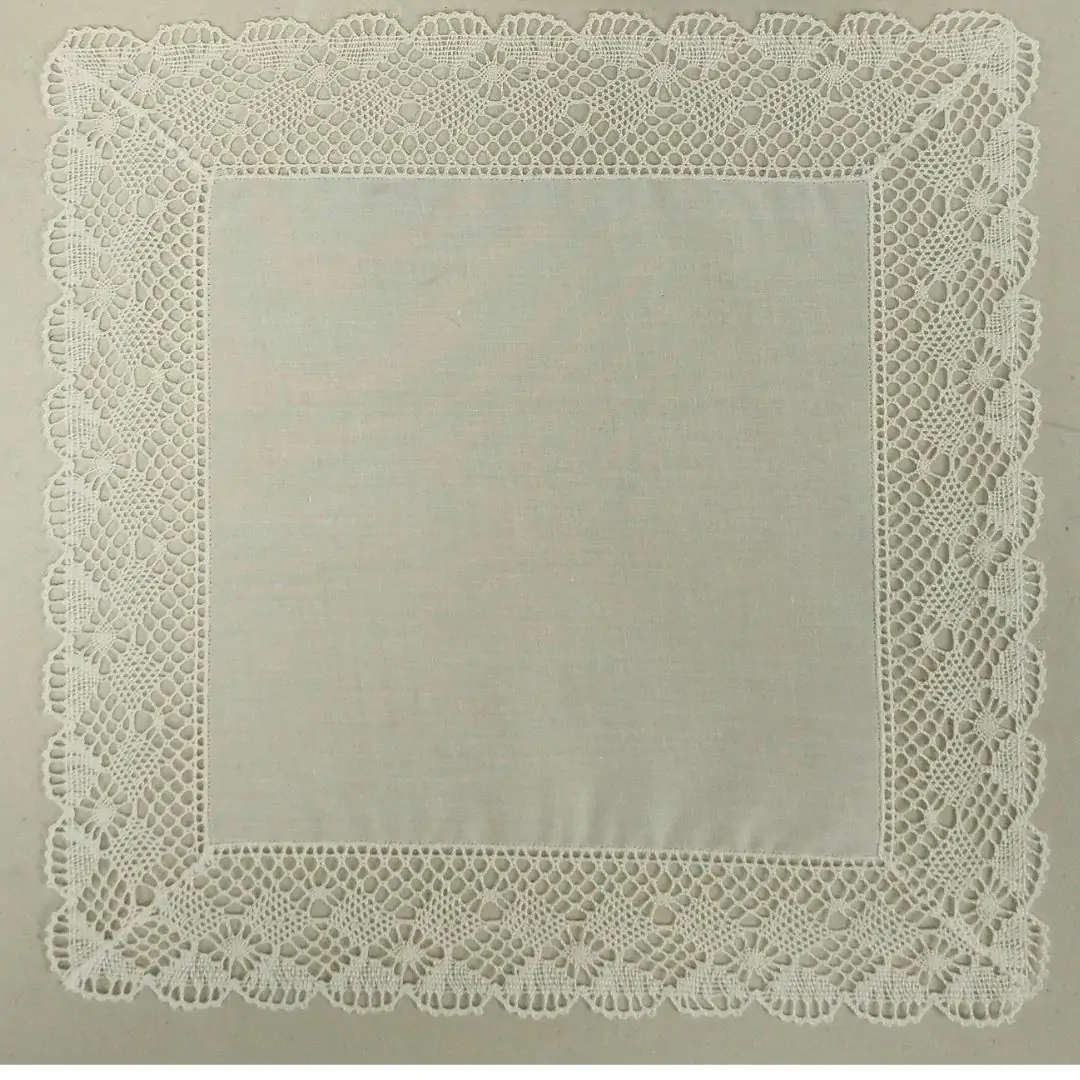 Pañuelo de Bautizo, Comunión o Novias, confeccionado de forma artesanal. Con un tejido fino de batista y rematado con una puntilla de bolillo. Blanco, blanco roto o beig. Se personalizan bordados. Ideal para regalar y guardar como recuerdo.