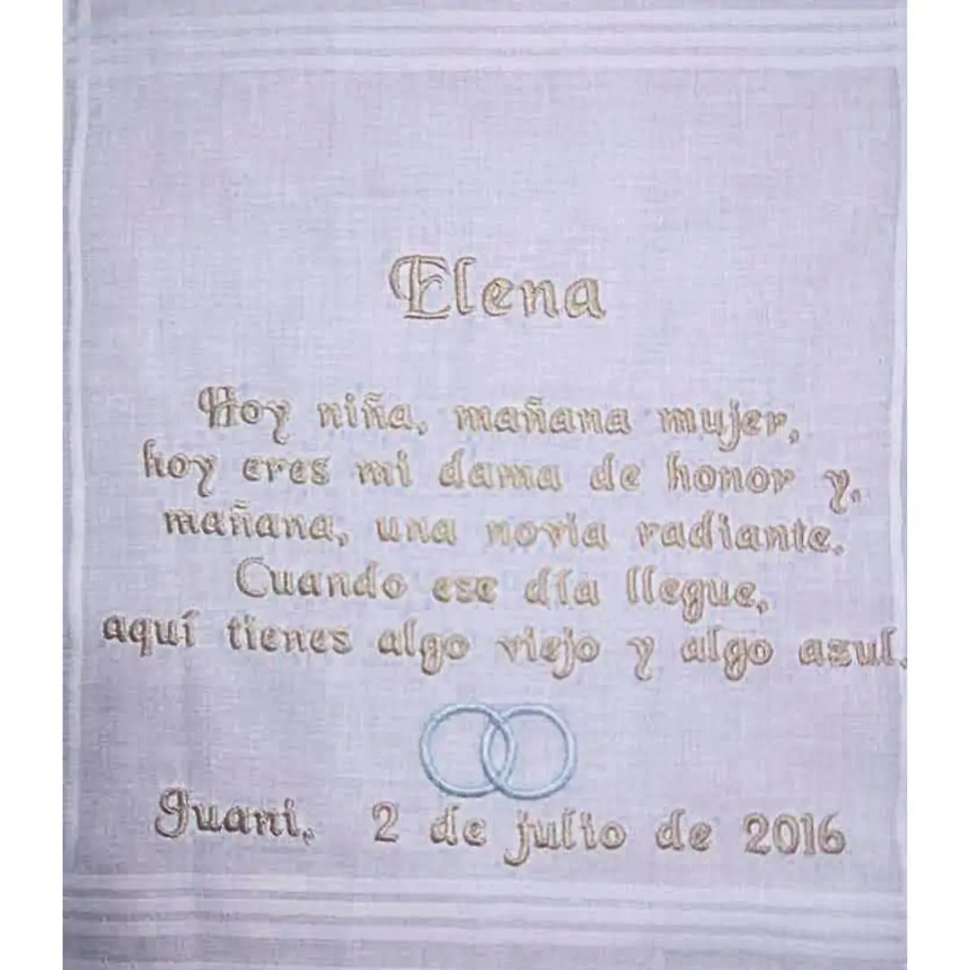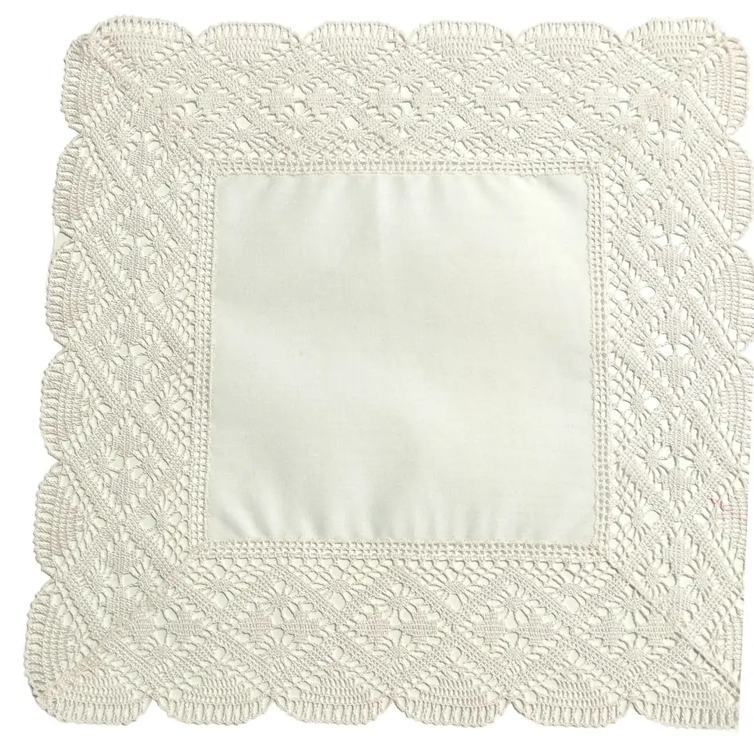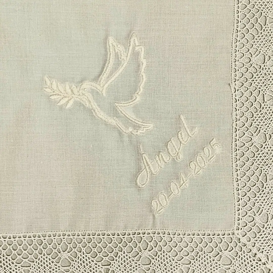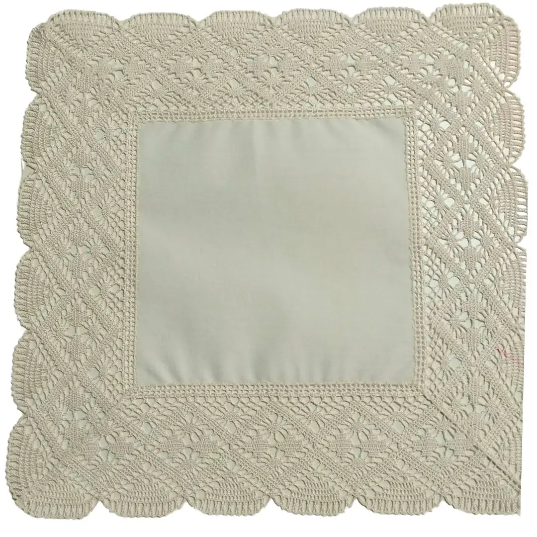 Pañuelo de Bautizo, Comunión o Novias, confeccionado de forma artesanal. Con un tejido fino de batista y rematado con una puntilla de bolillo. Blanco, blanco roto o beig. Se personalizan bordados. Ideal para regalar y guardar como recuerdo.